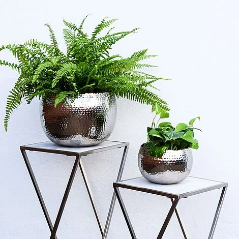 A contemporary accent piece with industrial elements, our hammered bowl in Nickel/Black is perfect for creating an on-trend interior scheme. Whether styled alone or with lush blooms and greenery, this waterproof planter makes a stylish impression in the home place, with its high-shine finish wonderfully catching the light for an extra dose of splendour.