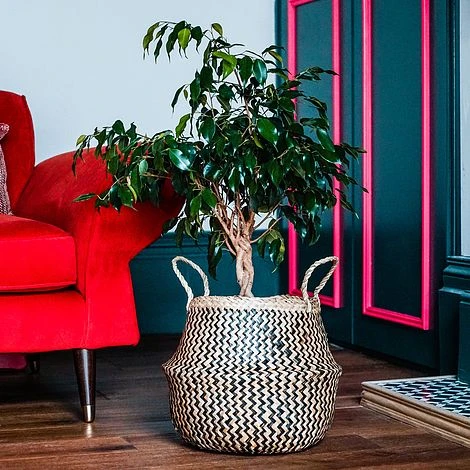 Achieve laidback contemporary styling with our ethically-sourced, lined seagrass chevron basket. Hand finished with a premium quality and woven design, this waterproof planter is perfect for displaying your favourite house plants, with its two handles allowing easy transportation whilst adding extra detail. No plant? No problem. This versatile basket also doubles up as storage.